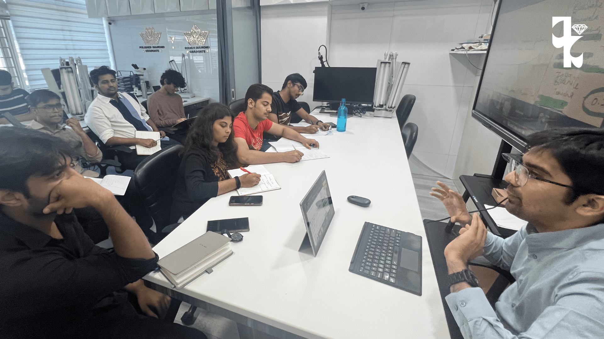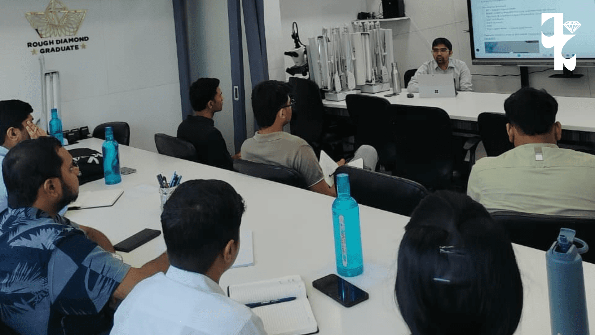 In-depth understanding of the 7Cs and 7s Concept , clarity defects, blemishes, proportion factors, international and domestic grading standards, Rapaport pricing, and real trade terminology—along with practical exposure through detailed diamond videography and photography.