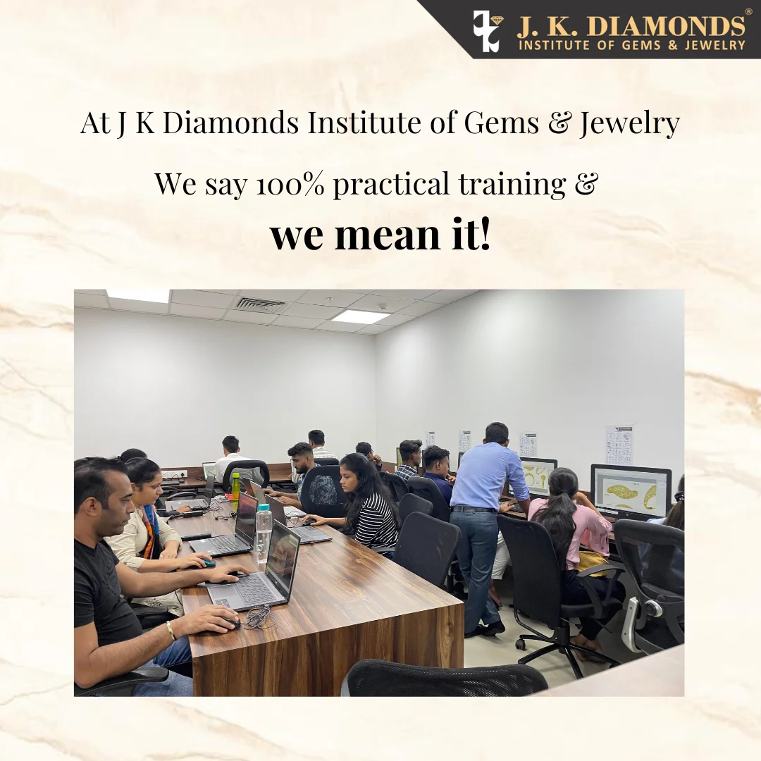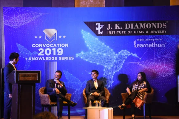 J K Diamonds Institute of Gems & Jewelry hosts events to enhance students' practical knowledge and enrich their training. These include convocations, knowledge sessions with alumni and brand owners, design workshops, and webinars on diamonds, gems, and jewelry manufacturing.