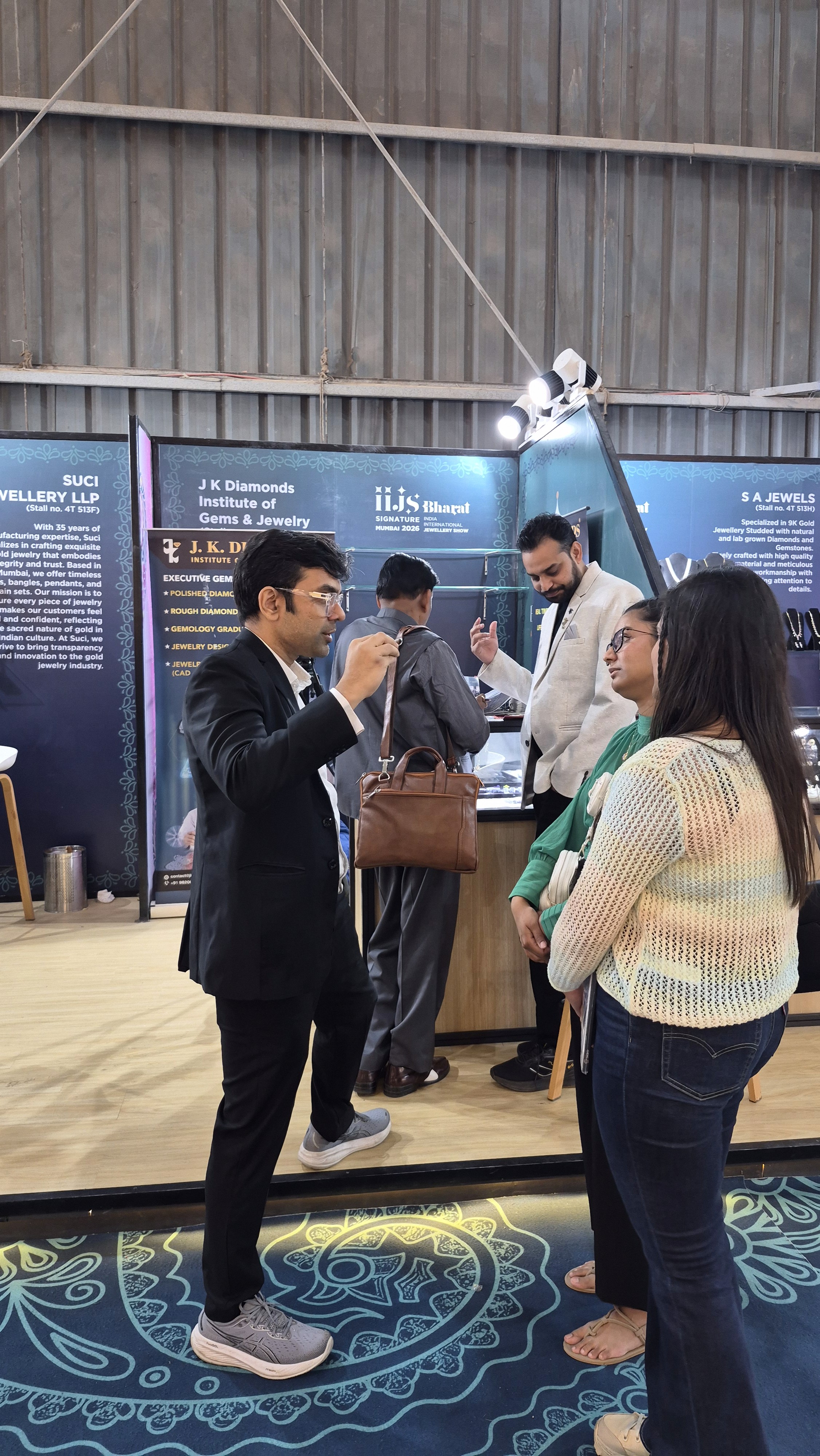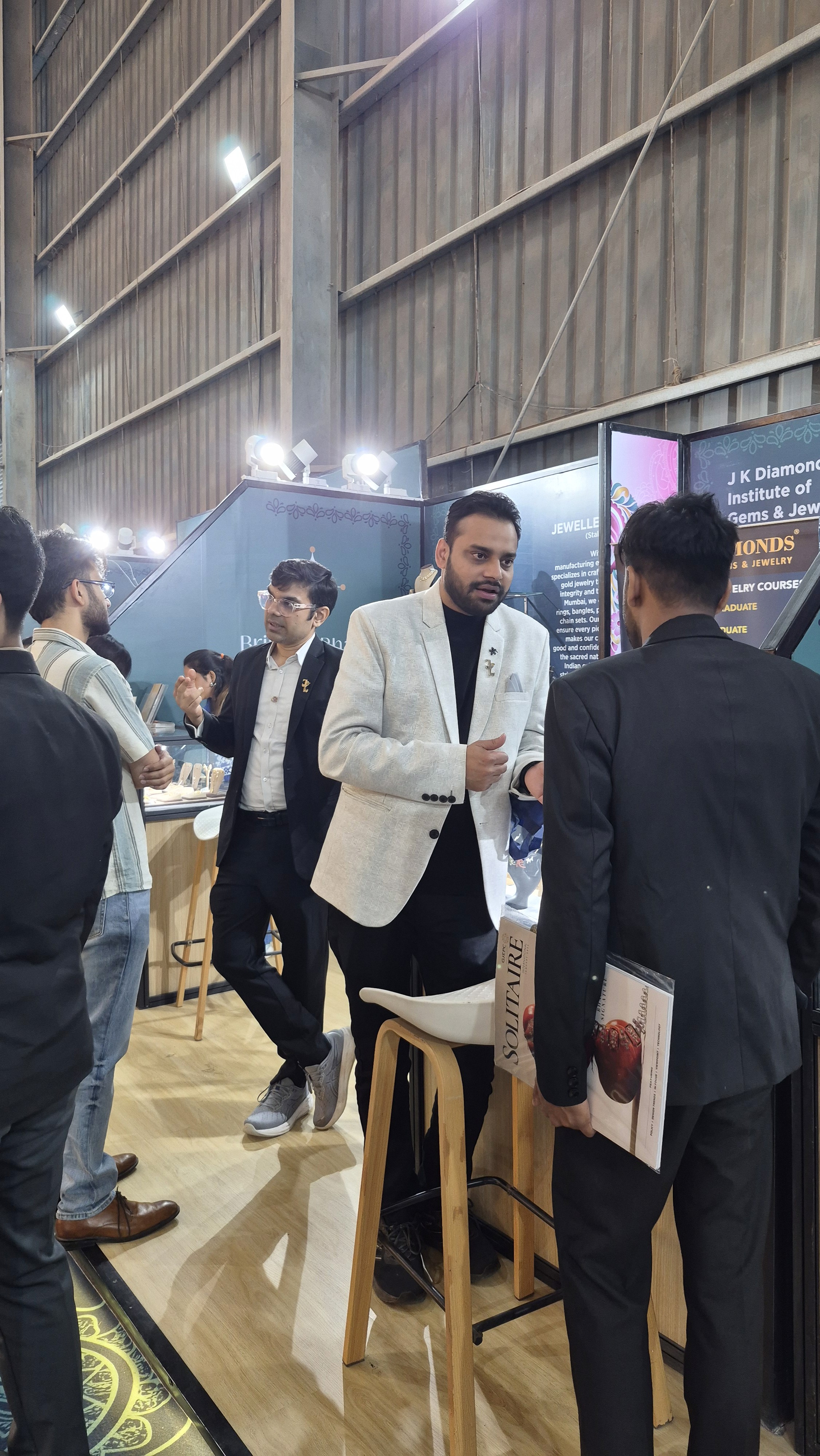 The stall witnessed engaging discussions as students visited to understand the courses offered by J K Diamonds Institute and explore how structured learning can support long-term success in the jewelry business. Many students cleared their doubts through focused one-on-one conversations with Mr. Jaynil Ajmera, gaining clarity on course structure, practical exposure, and building sustainable jewelry ventures.