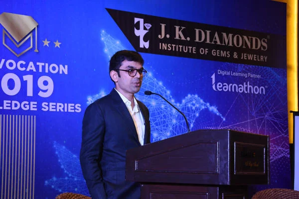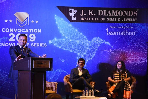 J K Diamonds Institute of Gems & Jewelry organized the Convocation cum Knowledge series for its students at Hotel Sahara Star on the 12th of July, 2019. The function with a very inspiring welcome speech by Mr. Jaynil Ajmera. The positive energy in the room was very contagious. To add more zest, Mr. Jaynil Ajmera invited our chief guests, Mr. Manit Shah (MD, Global Emerging Markets) and Mrs. Sarika Naheta (Director, Jaipur Jewels and an Alumni of JK) on the stage to share their views on the jewelry industry and the impact of branding in today’s markets.